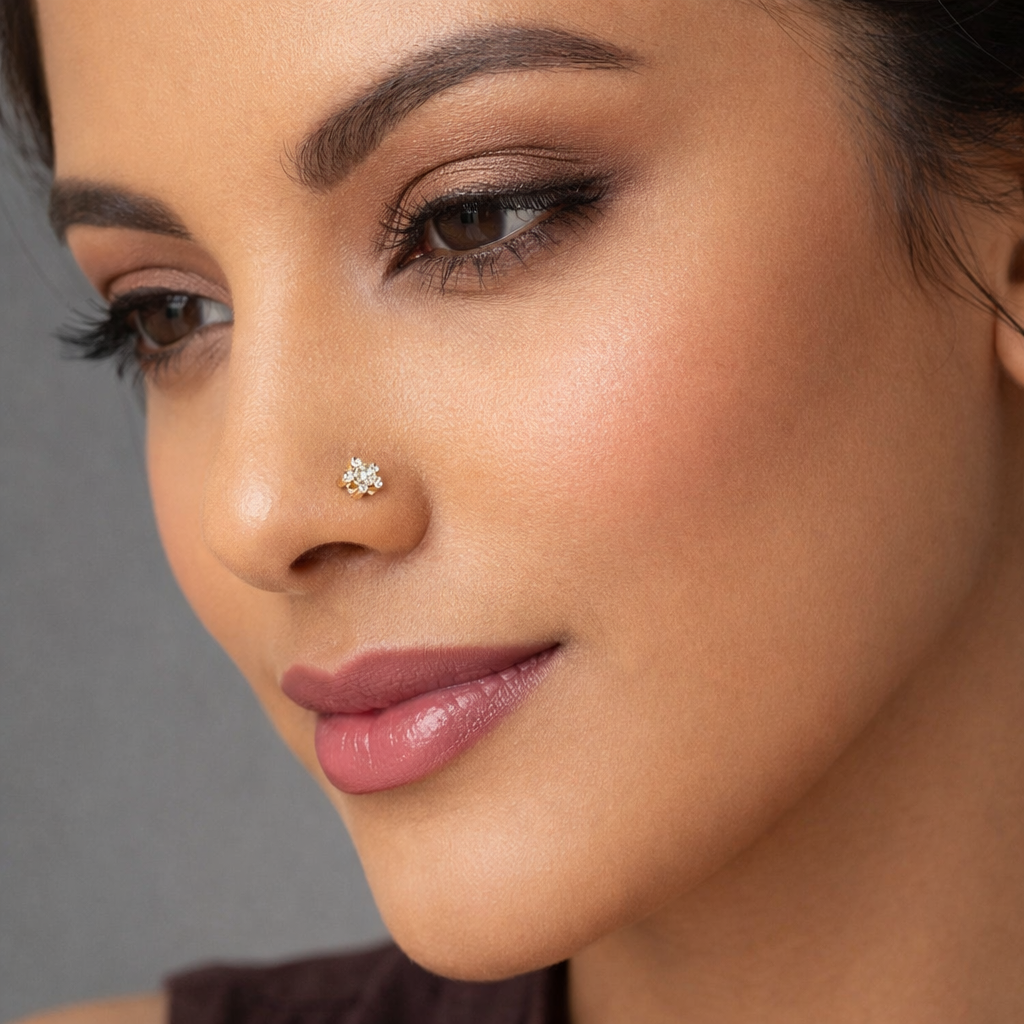 Perfect for daily wear, festive occasions, or gifting, this diamond nose pin adds a subtle sparkle and refined elegance to your look.