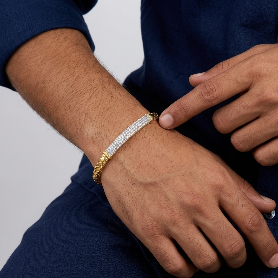 Crafted in BIS Hallmarked gold with an approximate weight of 25.00 grams (14KT), the bracelet offers a rich, premium feel with excellent durability, making it ideal for both special occasions and statement daily wear.